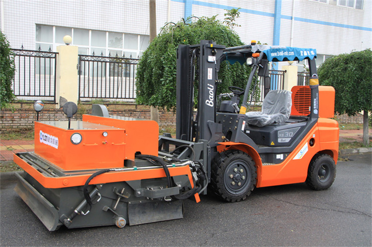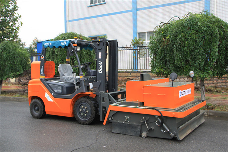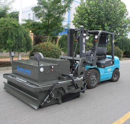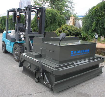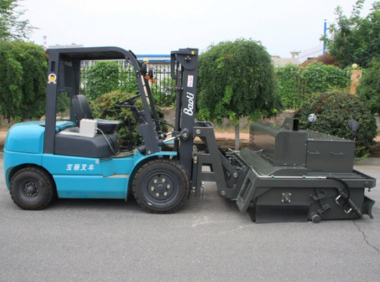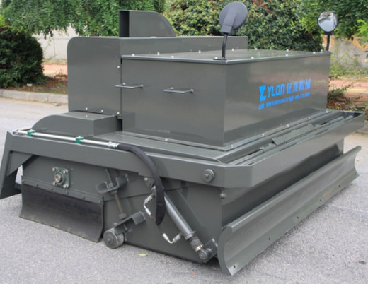 我公司生產的路面環保無塵清掃機是結合國內外同類設備特點開發的新一代路面環保無塵清掃機。在工作過程中沒有灰塵,解決了道路施工中灰塵大,影響交通、環境污染的問題,響應了國家提倡環保節能的政策。該設備在小型裝載機、滑移裝載機、叉車等基礎上進行改裝,經濟實用。采用專業、高功效的環保無塵清掃設備,替代傳統大量人力低效、不安全、灰塵大的清掃方法,節省人力成本,具有效率高、效果好、速度快、油耗低等特點。該機采用封閉灰斗箱,大顆粒通過刷子直接掃入灰斗箱中,配置高效吸塵器,通過風機吸力將微灰塵吸到濾箱體內,通過濾箱體內濾芯的過濾和反吹部件的反吹最后落入灰斗箱中,灰斗箱滿后,可以傾倒至垃圾處理點或直接裝車,清潔而環保。清掃器與原機鏟斗可快速更換,還可選配多種機具,便于實現一機多用(裝載、無塵清掃、除雪、掃雪、拉毛等),實現多功能。